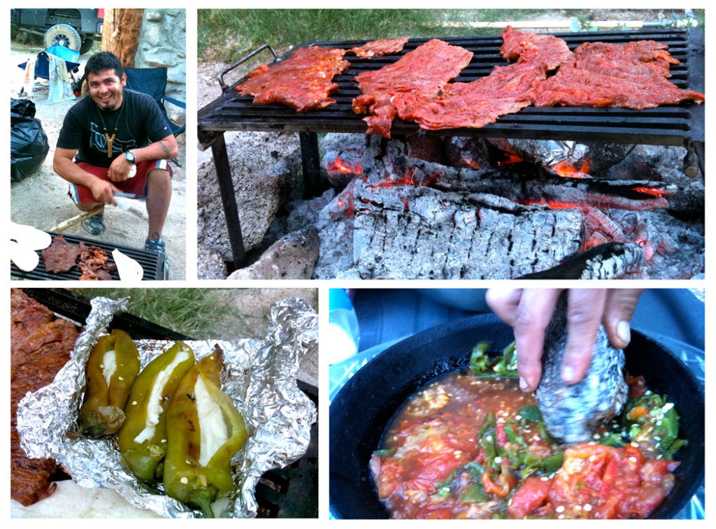 One of our classic family dinner events is Carne Asada Taco Night courtesy of Camp Master Luis. Each trip he busts out a new grill that he has fabricated himself ahead of time, builds a real wood fire (no coals here), and stirs fresh made salsa-with a rock he finds at the site! His cheese stuffed chilies are to die for, as well as his cheesy beef tacos…and don’t get me started on the fantastic selection of salsas he and his beautiful wife Aida make to accompany all the amazing food they throw down for the whole gang to enjoy.