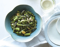 MISO IS A GREAT SOURCE of essential vitamin B12 and immune-strengthening zinc. Plus, it delivers big taste and significant health benefits. In the winter, it’s easy to add miso to soups and stews. Come spring, I favor lighter preparations like this one that contrast miso’s taste with the delicate and sweet Marcona almonds and fresh asparagus to highlight the flavors of the season.