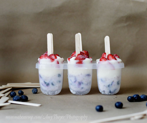 It’s pretty much inevitable that you will be spending your time outdoors on the Fourth of July. With these red, white, and blue frozen yogurt pops they will, not only give you a treat in a snap, but will quench that need for a cool treat on a hot day. Fresh fruit and yogurt are light and refreshing ingredients that will please family and friends of all ages and wont leave you with that heavy feeling, so you still feel great and energized for those late night fireworks. What you will need: