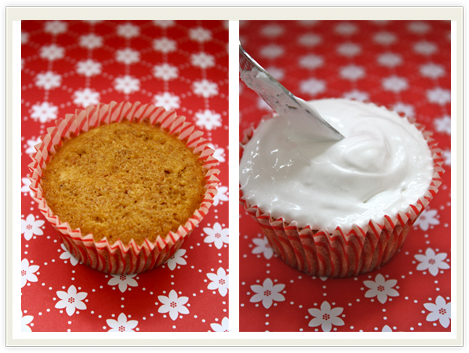 Top cupcakes with marshmallow fluff.