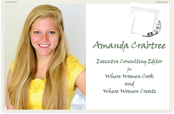 I’m thrilled to feature one of the editors for both Where Women Create and Where Women Cook. Meet Amanda Crabtree, lovely and so adorable I want to take her home in my purse. (Plus, I really, REALLY want her hair.)