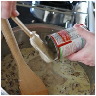 - 1 can Campbell’s healthy choice condensed cream of mushroom soup2 - 3 tsp cracked pepper to finished soup