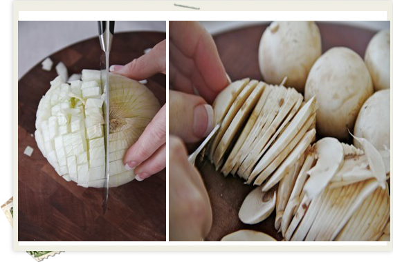 - Keep slicing several mushrooms and add to the onions and stir. You do not have to slice all the mushrooms at once then add them when done. Adding mushrooms as you slice allows the sauté mushrooms to seep out their juices.