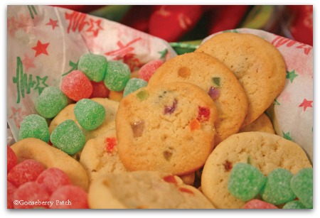 We love using refrigerated cookie dough to make short work of holiday cookies. There’s almost no end to the ways you can dress them up! Cut them into minis and sandwich a little icing in between, roll the edges in colored sugar or chop up some gumdrops to blend into the dough before baking. We like to fill a vintage-style tin or cut-glass jelly jar with these…a wide-mouth mason jar would work too!